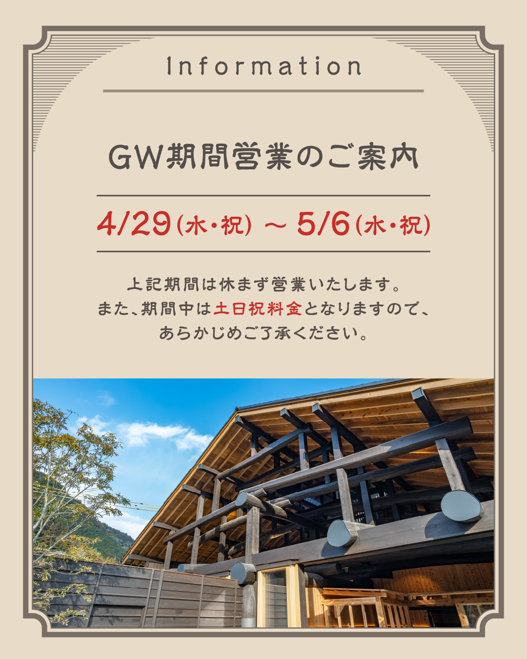 2026年4月29日(水・祝)〜 5月6日(水・祝)のゴールデンウィーク期間中、当館は休まず営業いたします。